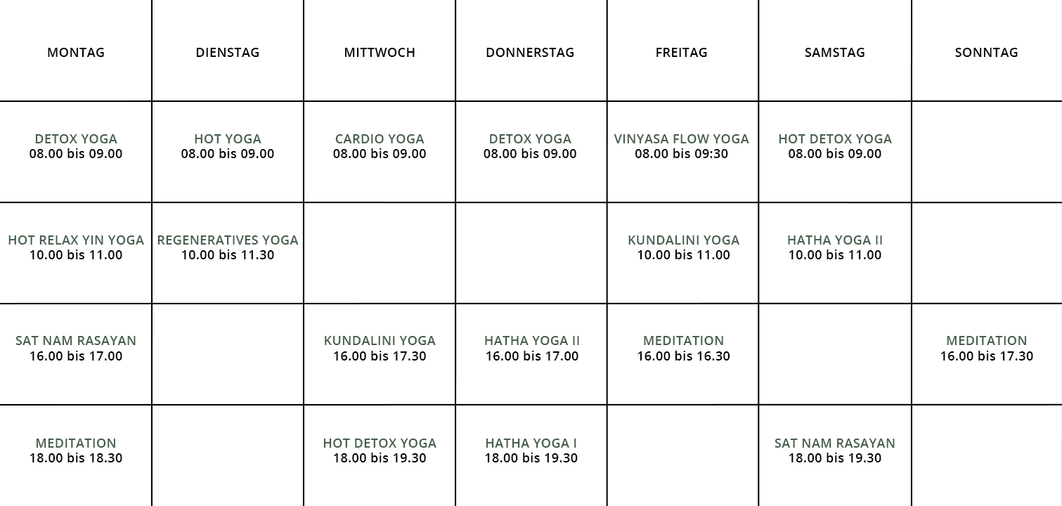 Bitte bringen Sie zu jedem Kurs Ihr eigenes Handtuch mit!